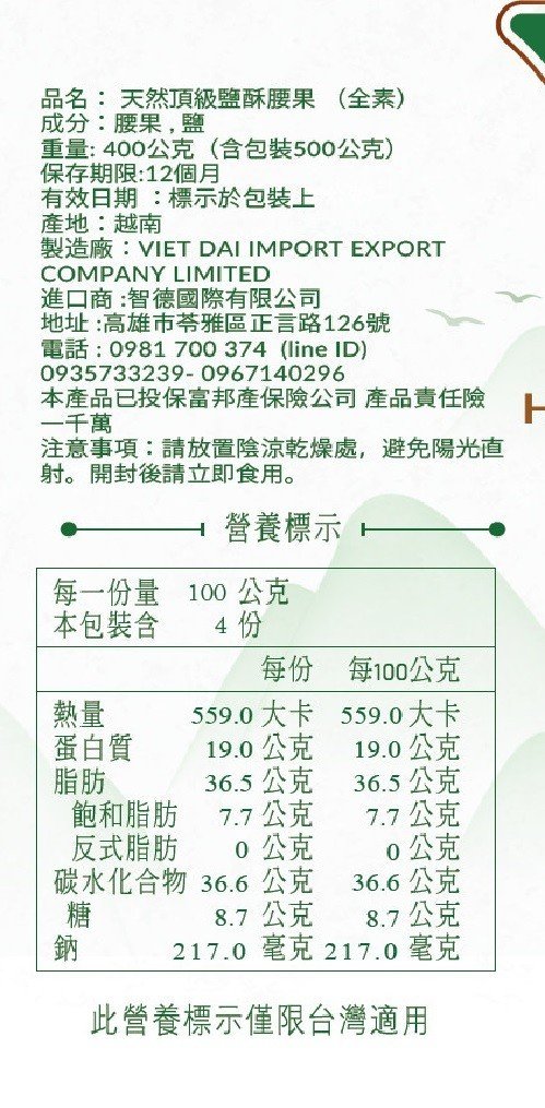 📌進口商: 智德國際有限公司(台灣)智德越南進口產品店